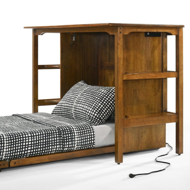 Our Siesta Twin Desk Bed is a truly instant guest bed. Convert it from a handsome standing height desk to comfy twin size bed in less than a minute. When all closed up it just takes about 12.5 square feet of floor space. Easy to use, easy to love.